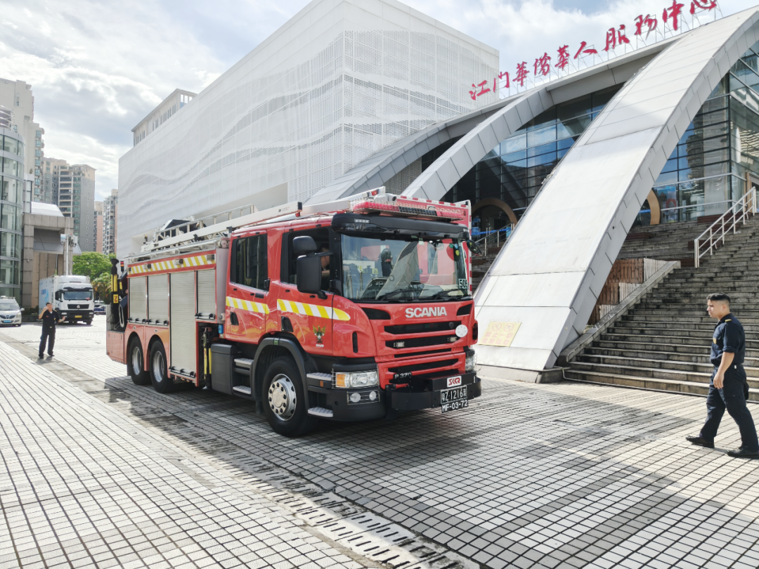 澳门消防局10米长的大型抢险救援消防车吸引了现场不少群众围观打卡。据悉,这是该装备首次在江门面向群众公开展示,搭载的重型吊臂能轻松吊起11吨重物。